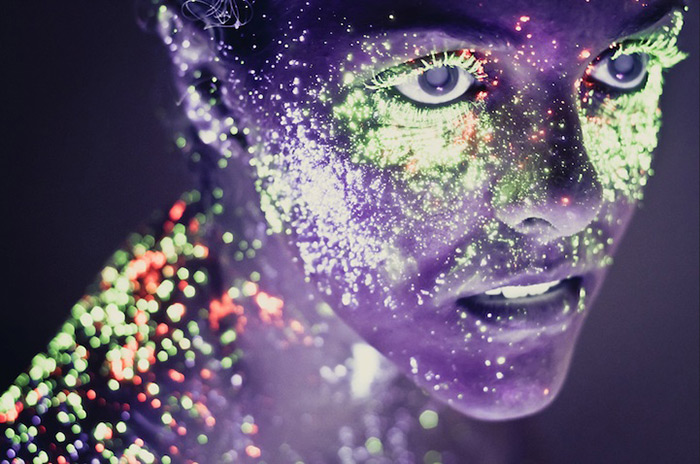 Hid Saib é um fotógrafo português que trabalha com tintas luminescentes e com as partes do corpo humano. Em certos momentos, o efeito é perturbador, lembrando esguichos sobre a face. Outras vezes, consegue um resultado sereno, constelações, nuvens, auroras boreais.
